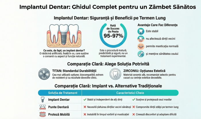 Dacă te interesează implantul dentar în Craiova, cel mai probabil cauți răspunsuri clare la câteva întrebări esențiale: merită acest tratament, cât de sigur este, ce materiale se folosesc și prin ce se diferențiază de alte soluții pentru înlocuirea dinților lipsă.